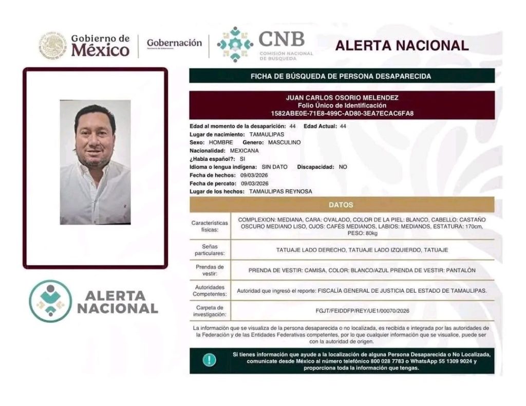 La Fiscalía General del Estado de Durango, en coordinación con la Comisión Nacional de Búsqueda solicita el apoyo de la ciudadanía para la localización de JUAN CARLOS OSORIO MELÉNDEZ 📞 ¿Tienes información?