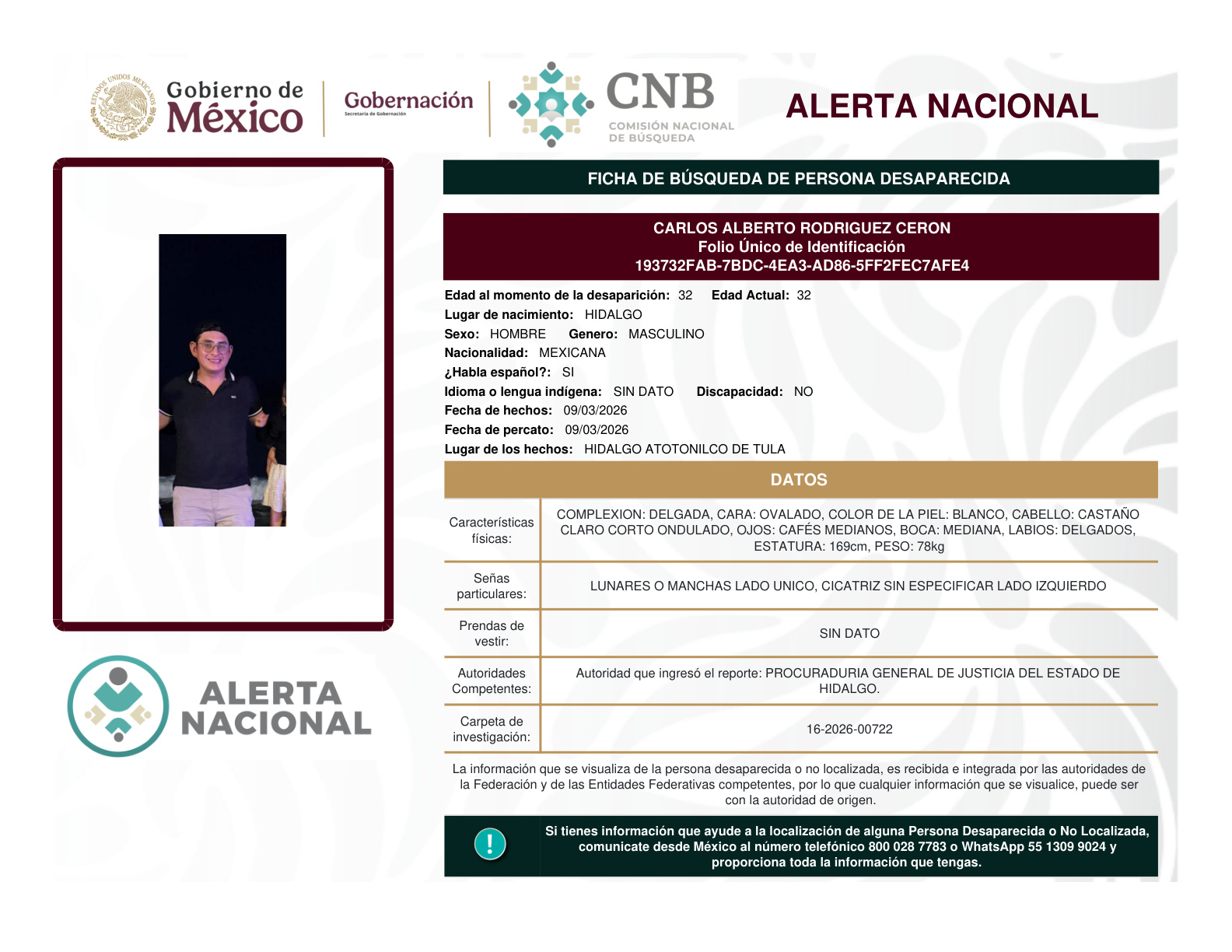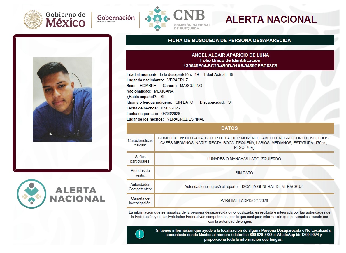 InicioBoletines • Se activa la Alerta Nacional de Búsqueda 🚨 ¿HAS VISTO A? 🚨