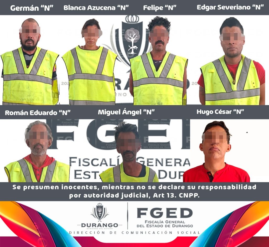 La Fiscalía General del Estado de Durango (FGED) a través del Agente del Ministerio Público adscrito al Centro de Operaciones Estratégicas (COE) de la Vicefiscalía Zona I Región Laguna y Durango, mediante los elementos probatorios expuestos ante el Juez de Control, obtuvo vinculación a proceso para: German “N”, Blanca Azucena “N”, Felipe “N”, Edgar Severiano “N”, Román Eduardo “N”, Miguel Ángel “N” y Hugo César “N”, por la presunta comisión del delito contra la salud en su modalidad de narcomenudeo del subtipo penal de posesión de narcóticos con fines de comercio.